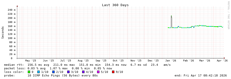 21 > 150.253.132.135 (150.253.132.135) [AS13445] 156.139ms 155.931ms 156.195ms