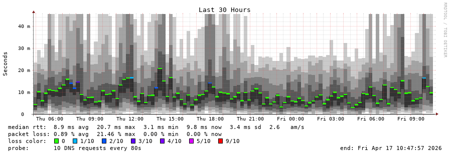traceroute to 9.9.9.9 (9.9.9.9), 30 hops max, 60 byte packets - Generated at 2026-04-17 01:00:01