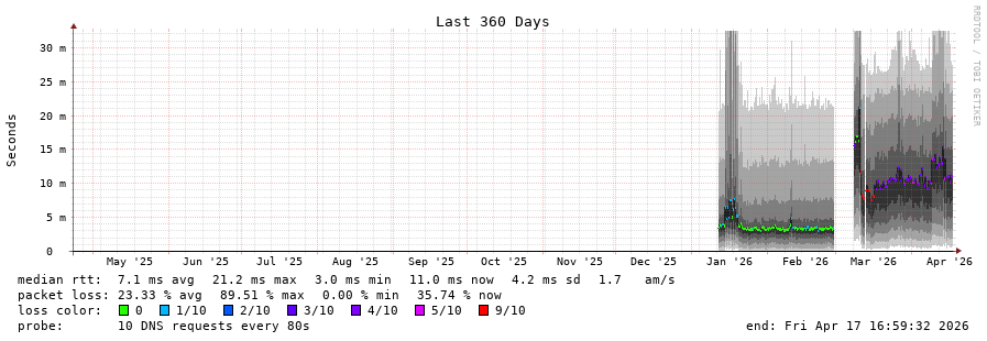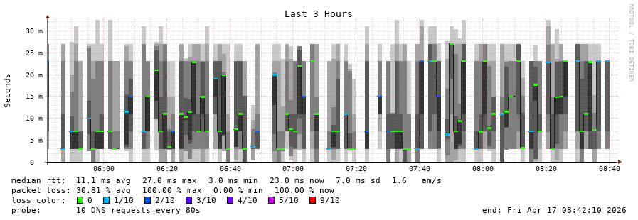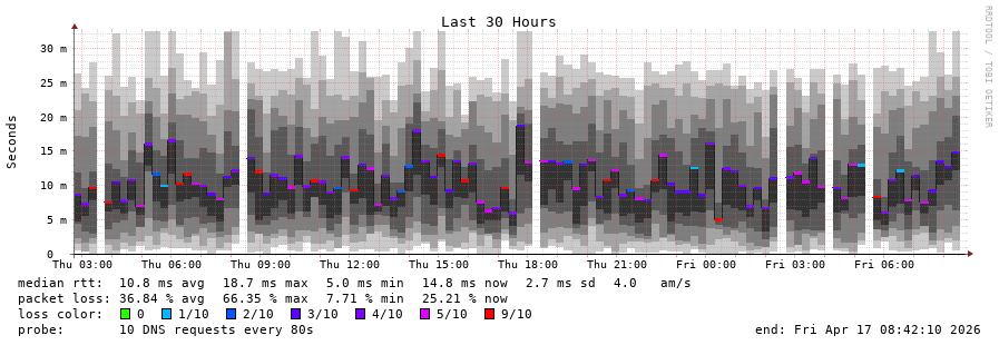 traceroute to 2620:fe::fe (2620:fe::fe), 30 hops max, 80 byte packets - Generated at 2026-04-17 02:00:01