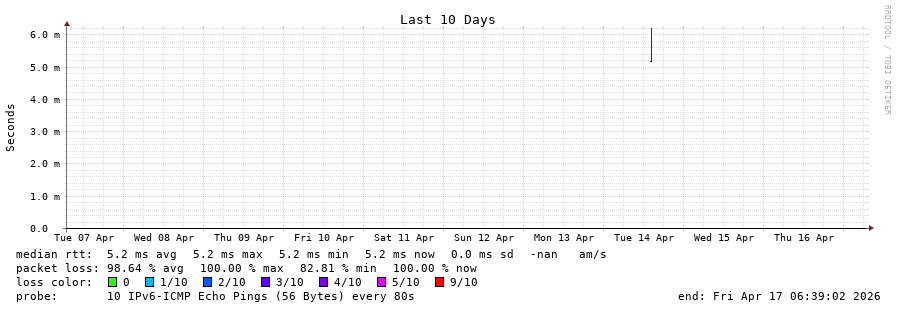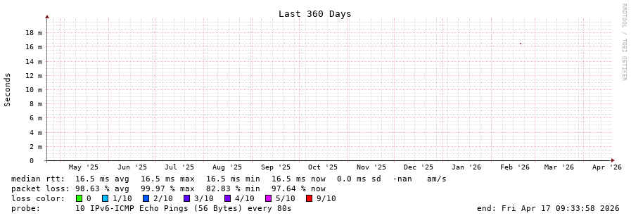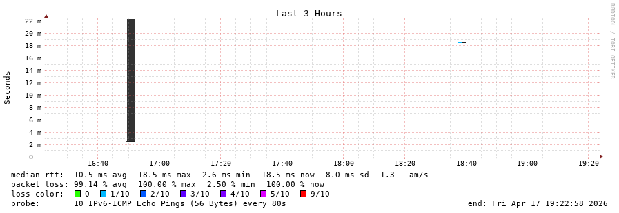 17 > 2603:10a0:1004:1005::182 (2603:10a0:1004:1005::182) [*] 2.399ms 2.442ms 2.365ms