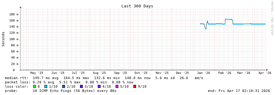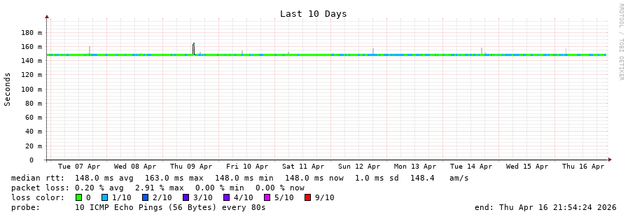 12 > 125.214.191.37 (125.214.191.37) [AS18001] 147.793ms 147.761ms 147.715ms