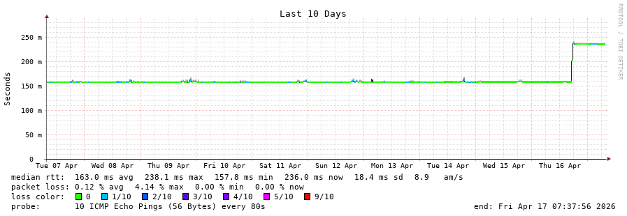 11 > be7948.ccr42.fra05.atlas.cogentco.com (154.54.72.126) [AS174] 234.404ms 234.438ms 234.088ms