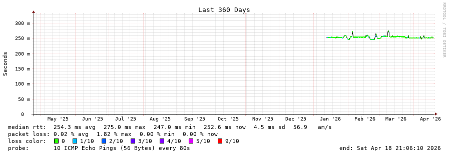 19 > 163.139.136.2 (163.139.136.2) [AS2519] 252.649ms 252.750ms 252.728ms