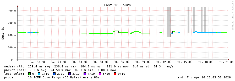 14 > 203.223.95.211 (203.223.95.211) [AS45245] 221.134ms 221.155ms 221.098ms