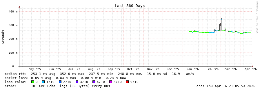 16 > unknown.telstraglobal.net (202.84.130.20) [AS4637] 254.779ms 254.771ms 254.787ms
