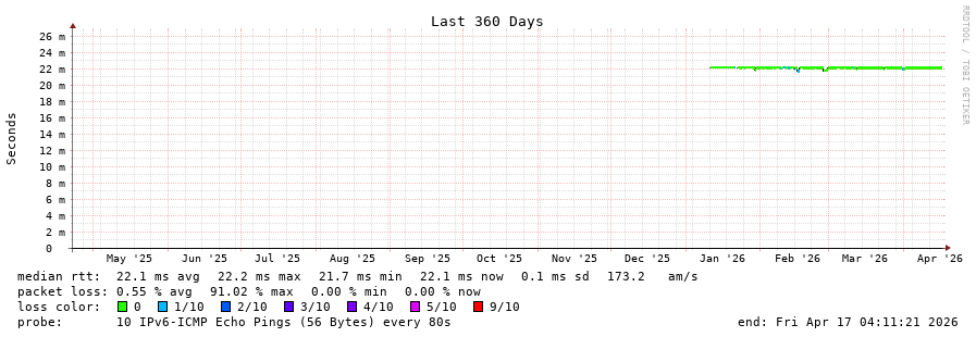 traceroute to 2001:b68:d:0:ee08:6bff:fe73:2da0 (2001:b68:d:0:ee08:6bff:fe73:2da0), 30 hops max, 80 byte packets - Generated at 2026-04-17 03:00:01