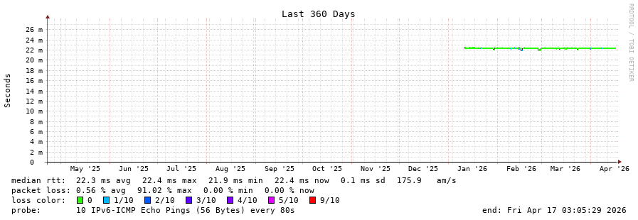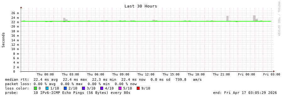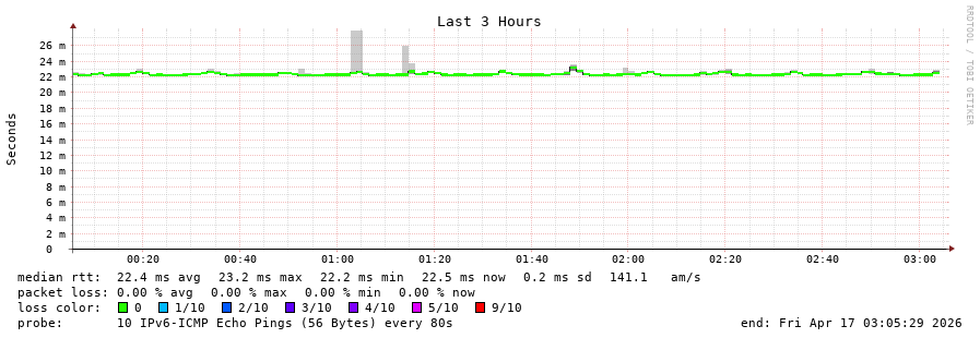 traceroute to 2001:b68:d::28 (2001:b68:d::28), 30 hops max, 80 byte packets - Generated at 2026-04-17 03:00:01