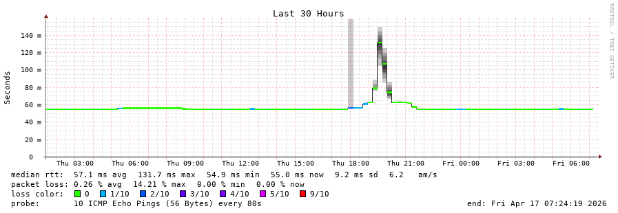 10 > ipv4.fra (80.81.194.47) [*] 6.563ms 124.466ms 30.546ms