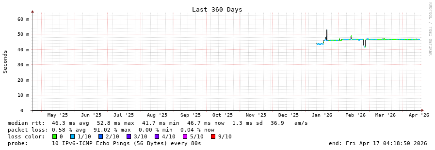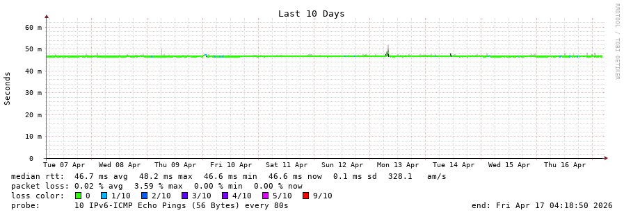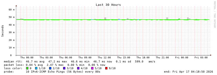 traceroute to 2001:35c0::204:27:68:152 (2001:35c0::204:27:68:152), 30 hops max, 80 byte packets - Generated at 2026-04-17 03:00:01