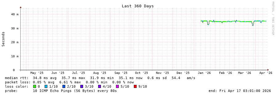 14 > 193.232.88.17 (193.232.88.17) [AS49505] 35.158ms 35.121ms 35.145ms