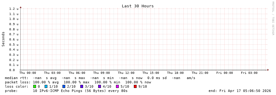 traceroute to fd69:226f:3a3c::2 (fd69:226f:3a3c::2), 30 hops max, 80 byte packets - Generated at 2026-04-17 01:15:01