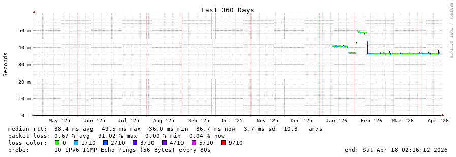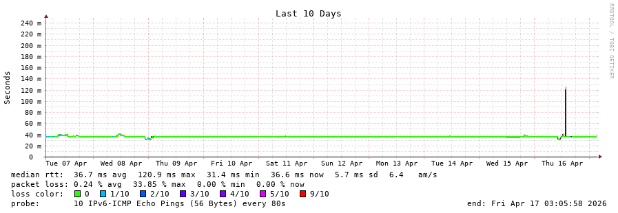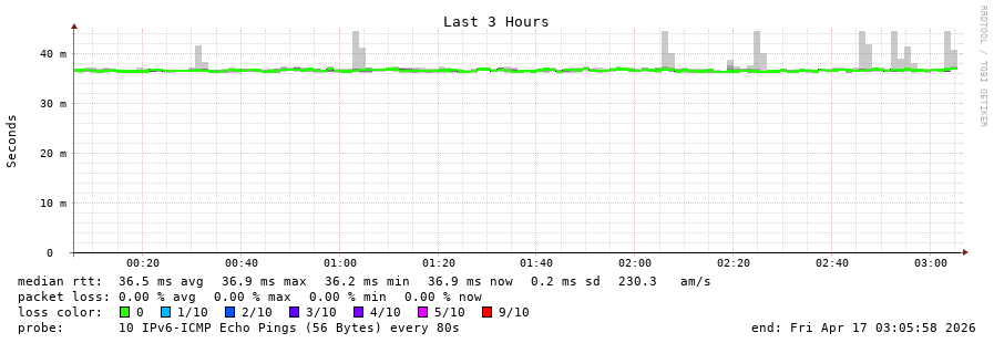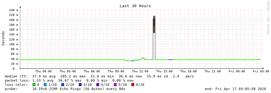 traceroute to 2a0b:2f00:0:234::151 (2a0b:2f00:0:234::151), 30 hops max, 80 byte packets - Generated at 2026-04-17 03:00:01