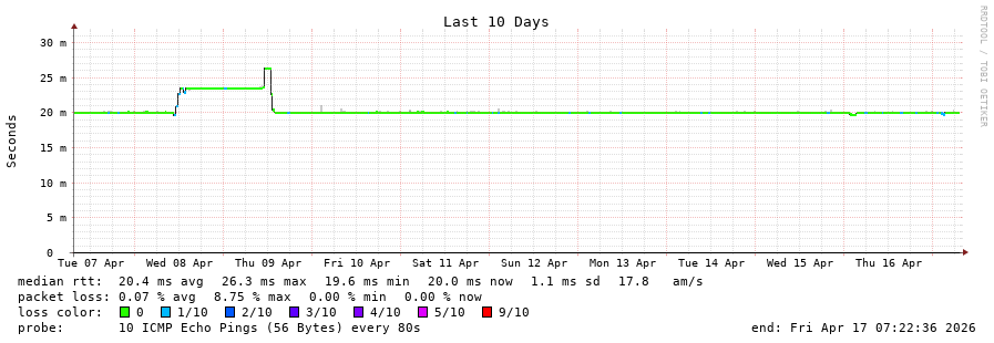 9 > 10.200.0.19 (10.200.0.19) [*] 3.768ms 3.350ms 26.646ms
