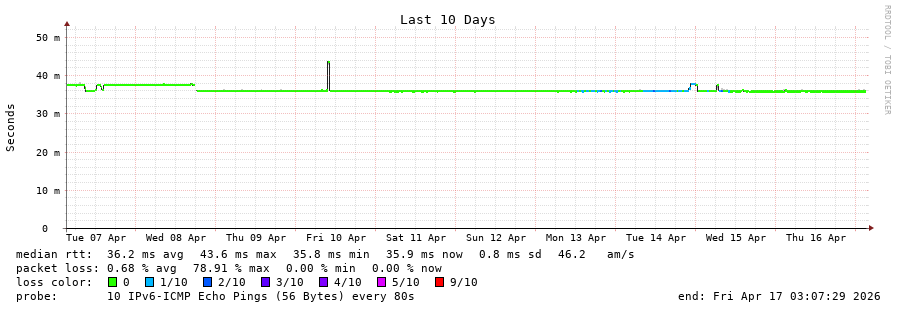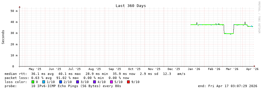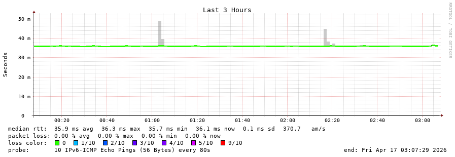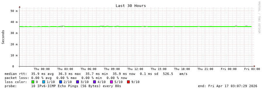 15 > 2001:67c:10:1102::11 (2001:67c:10:1102::11) [AS60149] 35.868ms 35.855ms 35.859ms