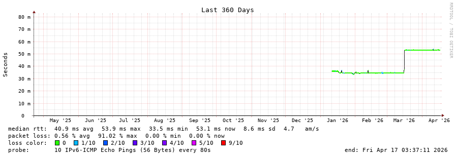 15 > 2a00:c561::4 (2a00:c561::4) [AS62416] 55.804ms 60.026ms 63.107ms