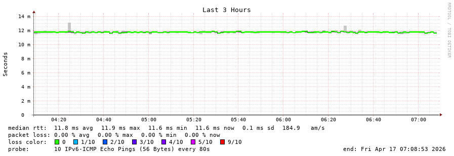 11 > fdff:f000:8:: (fdff:f000:8::) [*] 10.040ms 9.919ms 10.023ms