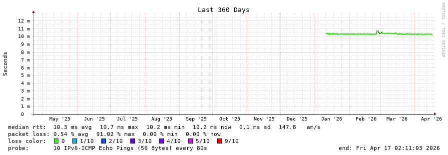 12 > fdff:f003:fff8::5 (fdff:f003:fff8::5) [*] 14.031ms 11.475ms 14.341ms