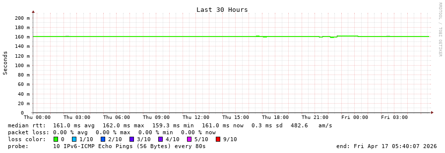 18 > 2604:2dc0:0:100::1:87d (2604:2dc0:0:100::1:87d) [AS16276] 159.702ms 159.940ms 159.827ms