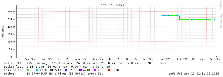 14 > 2607:5300:50::8 (2607:5300:50::8) [AS16276] 252.160ms 253.133ms 252.578ms