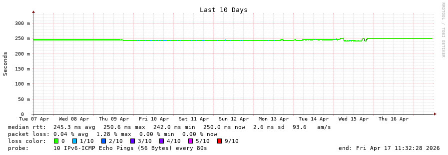 15 > fdff:f003:408::1 (fdff:f003:408::1) [*] 246.496ms 246.549ms 246.462ms