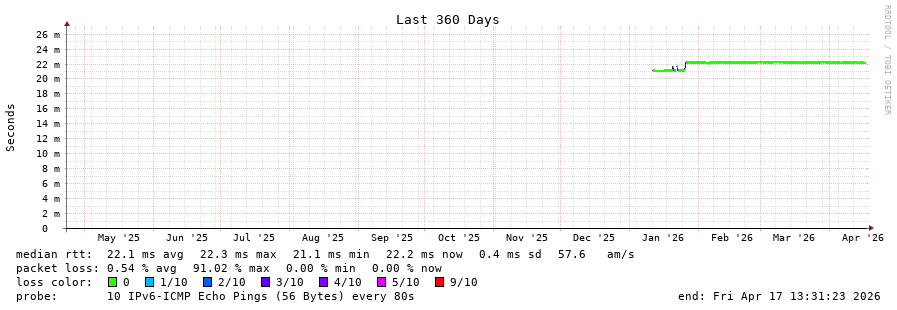 traceroute to 2001:41d0:601:2000::768 (2001:41d0:601:2000::768), 30 hops max, 80 byte packets - Generated at 2026-04-17 06:45:01