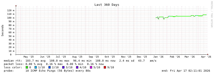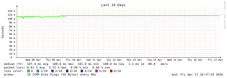 18 > yto1-yyz01.smokeping.ovh.net (72.251.3.31) [AS16276] 107.870ms 107.818ms 107.845ms