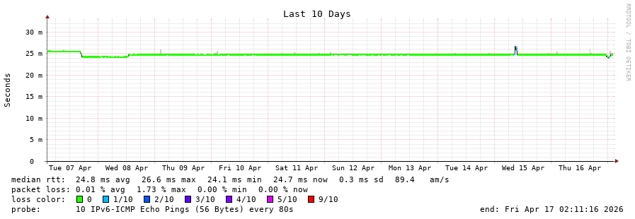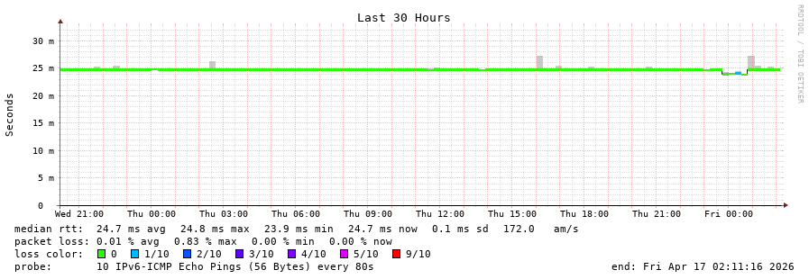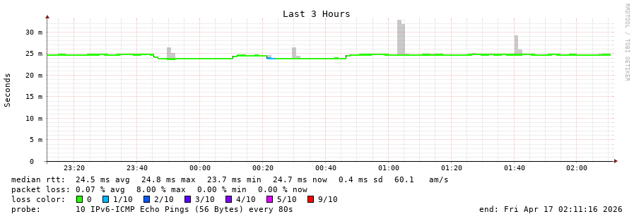 17 > 2001:978:2:60::61:17 (2001:978:2:60::61:17) [AS174] 27.795ms 30.566ms 28.437ms