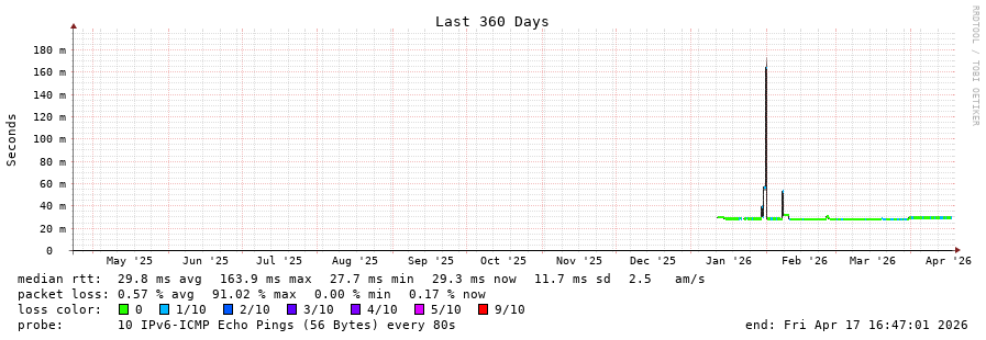 traceroute to 2001:41d0:ab0e::2:0:e0 (2001:41d0:ab0e::2:0:e0), 30 hops max, 80 byte packets - Generated at 2026-04-17 16:45:01