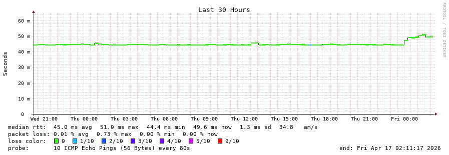 17 > 141.227.142.71 (141.227.142.71) [AS16276] 51.192ms 51.249ms 51.073ms