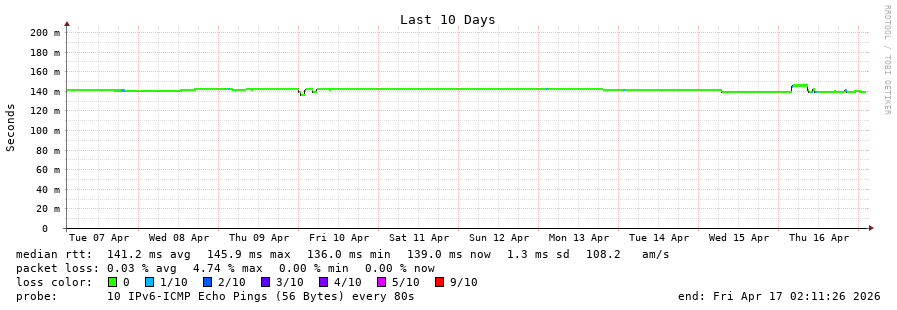 23 > 2001:550:2:5e::7b:2b (2001:550:2:5e::7b:2b) [AS174] 141.606ms 140.975ms 142.784ms