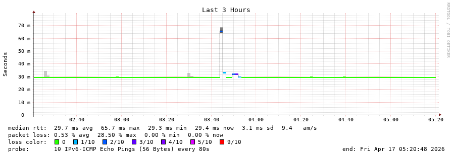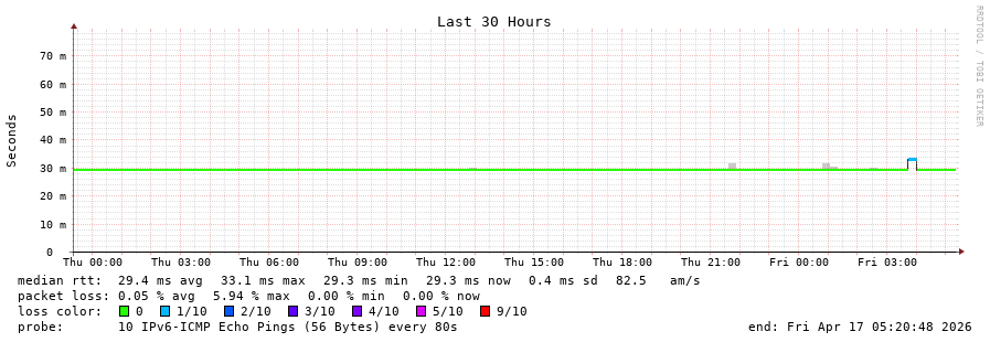16 > 2001:978:2:36::13 (2001:978:2:36::13) [AS174] 33.404ms 31.746ms 32.587ms