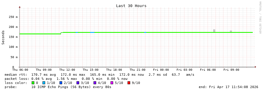 11 > 213.144.185.45 (213.144.185.45) [AS6762] 169.140ms 169.160ms 169.161ms