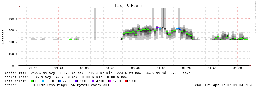 19 > 45.168.88.94 (45.168.88.94) [AS268056] 290.734ms 324.434ms 323.036ms