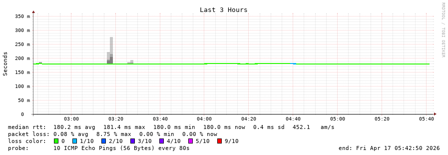 22 > 181.233.26.199 (181.233.26.199) [AS271835] 180.349ms 180.331ms 180.280ms