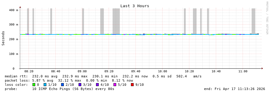 11 > globenet.ftlza.br.as52320.net (200.16.69.3) [AS52320] 165.268ms 165.458ms 165.397ms