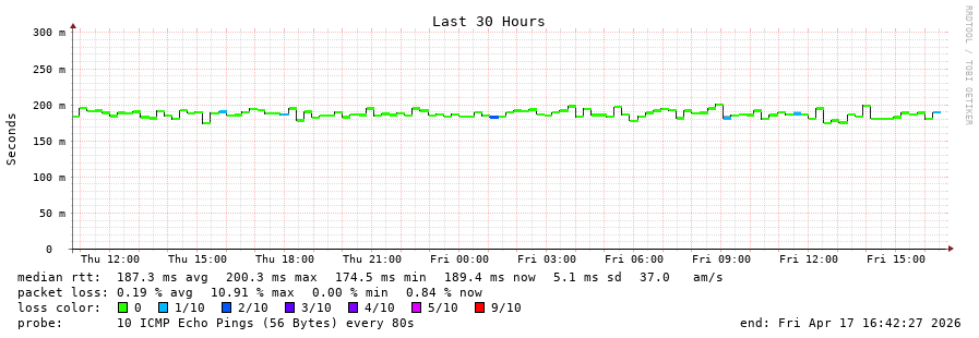 11 > 79.140.90.64 (79.140.90.64) [AS6762] 203.362ms 203.273ms 203.396ms