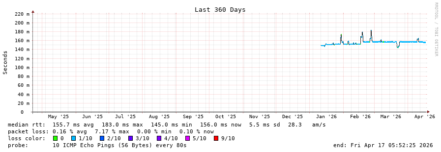 traceroute to 66.208.114.1 (66.208.114.1), 30 hops max, 60 byte packets - Generated at 2026-04-17 05:45:01