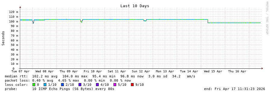 17 > ae3-0.tor-dcf2-pe01.distributel.net (206.80.255.79) [AS11814/AS21677] 96.285ms 96.383ms 96.388ms