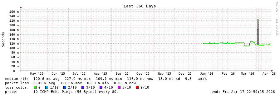16 > 209.148.215.41 (209.148.215.41) [AS812] 117.822ms 117.474ms 117.485ms