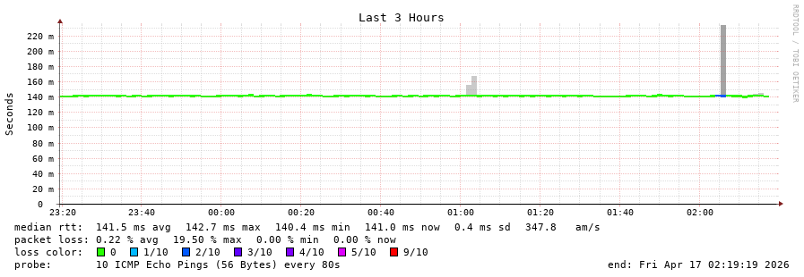 traceroute to 213.16.20.3 (213.16.20.3), 30 hops max, 60 byte packets - Generated at 2026-04-17 01:00:01