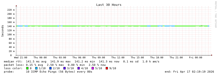 16 > 104.250.31.213 (104.250.31.213) [AS21351] 142.414ms 142.343ms 142.313ms