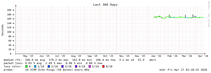 26 > 135.84.178.7 (135.84.178.7) [AS54527] 166.182ms 166.167ms 166.278ms