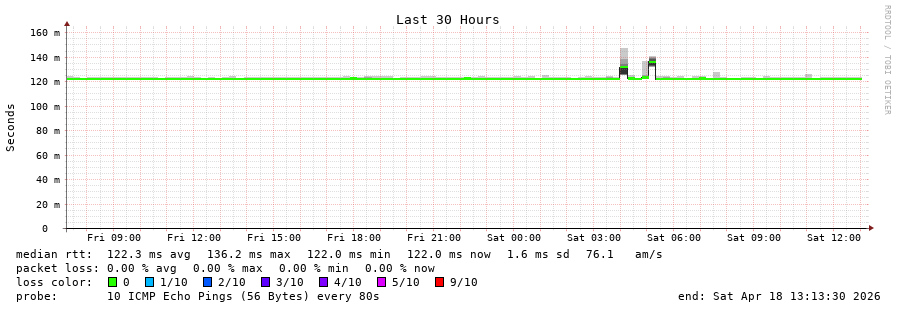 13 > 32.130.24.46 (32.130.24.46) [AS7018] 118.052ms 118.036ms 118.060ms